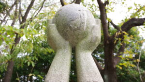 十条駐屯地内の開放された広場に、モニュメントとして残された変圧所の煉瓦が残されておりました。